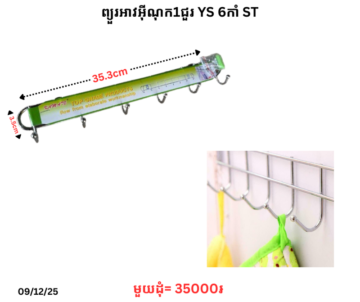 ព្យួរអាវអ៊ីណុក1ជួរ YS 6កាំ ST