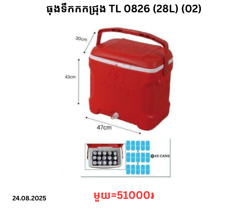 ធុងទឹកកកជ្រុង TL 0826 (28L) (02) December 19, 2025 Posted in 51000, TL, ធុងទឹកកកជ្រុង, ធុងទឹកកកជ្រុង TL Barcode : 8936082380339