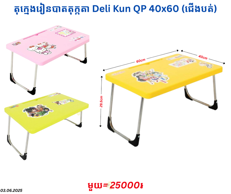 តុក្មេងរៀនបាតតុក្កតា Deli Kun QP 40×60 (ជើងបត់) November 9, 2025 Posted in 25000, QP, តុក្មេងរៀន, តុក្មេងរៀន QP, តុក្មេងរៀនបាតតុក្កតា