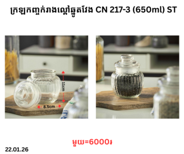 ក្រឡកញ្ចក់រាងល្ពៅឆ្នូតវែង CN 217-3 (650ml) ST